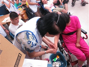 Led by Liu Qian, One Million Dollar Circle Member and Team Elite - 2 Years, together with Chen Xiaolin, Emerald Executive, Huang Jianhuang, Ruby Executive, Chen Jiayu, Peng Yiting and Li Xiangyi, Gold Executives, formed a NU SKIN Volunteer Team and went to Taipei Wanfangqineng Center to care for the people suffering somatopsychic disturbance. The center mainly offers social welfare service to those suffering moderate and severe somatopsychic disturbance, and aims at qualify them for working. Ranging from 15 to 65 years old, the service takers would be divided into different classes according to their condition so as to allow them to be taught and taken care in the most suitable ways.