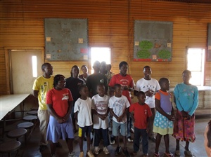 The group stood in front of BFI Initiative with the local children |
