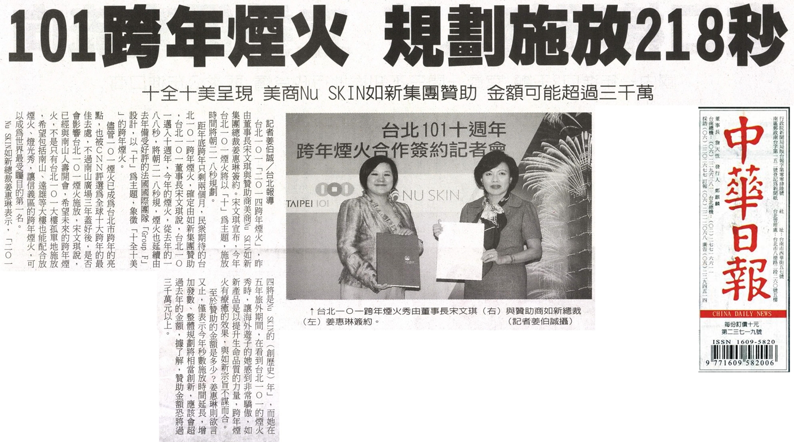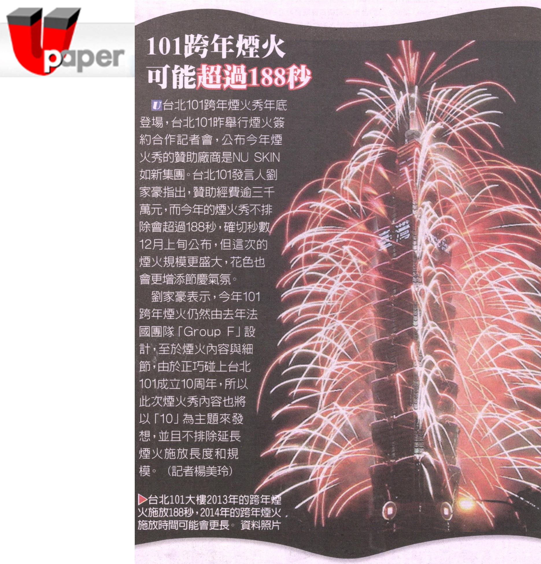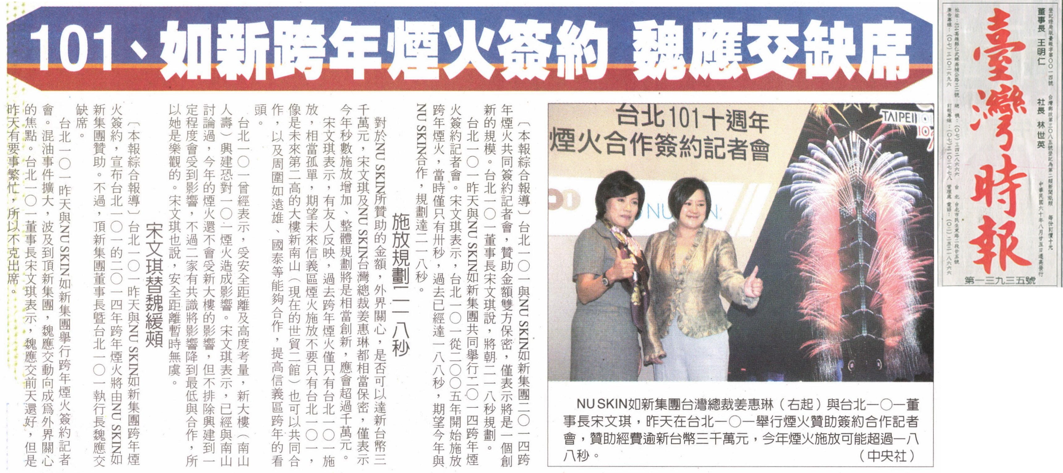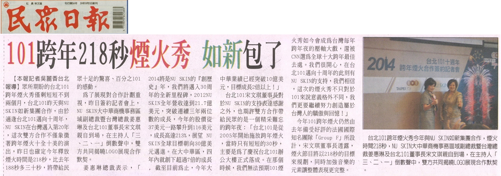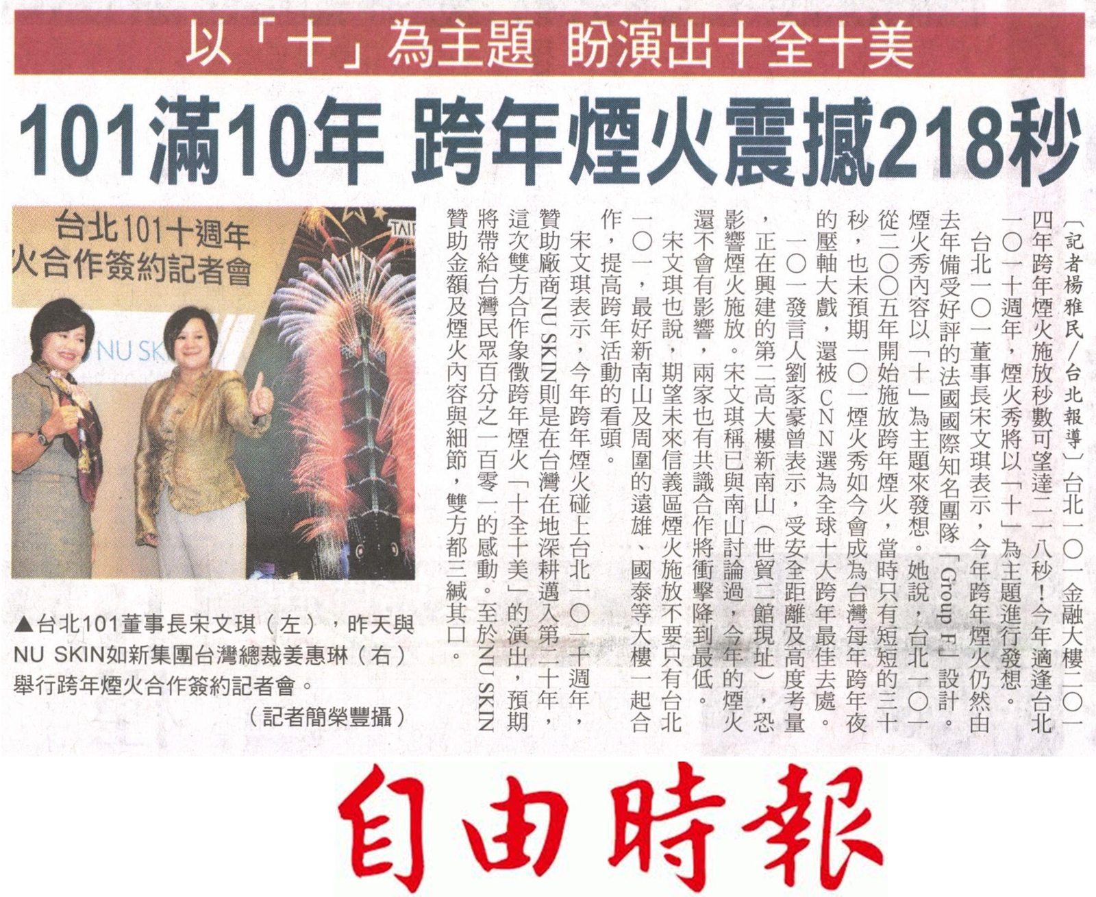 NU SKIN如新集團與台北101 合作簽約2014跨年煙火秀 |