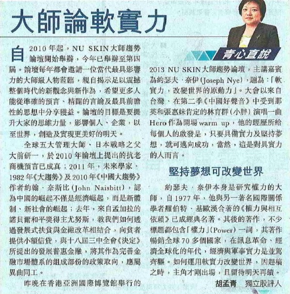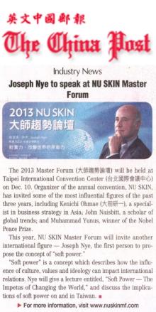 2013NU SKIN大師趨勢論壇 全球「軟實力之父」約瑟夫•奈伊伊應邀演講 |