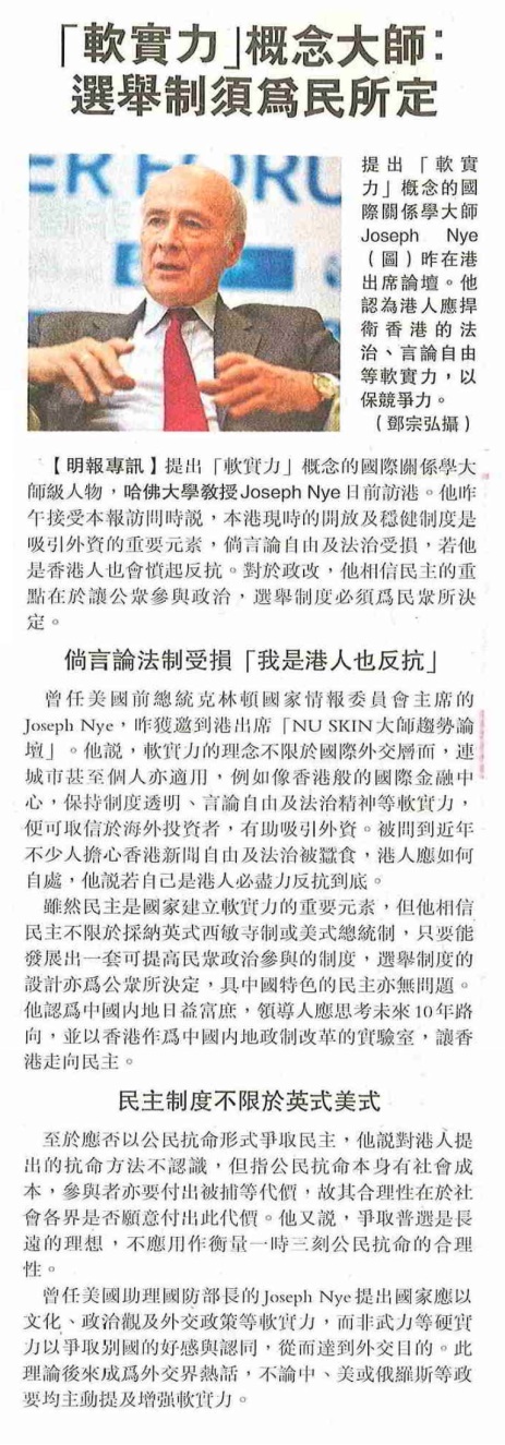 《軟實力概念大師:選舉制度須為名所定》 |