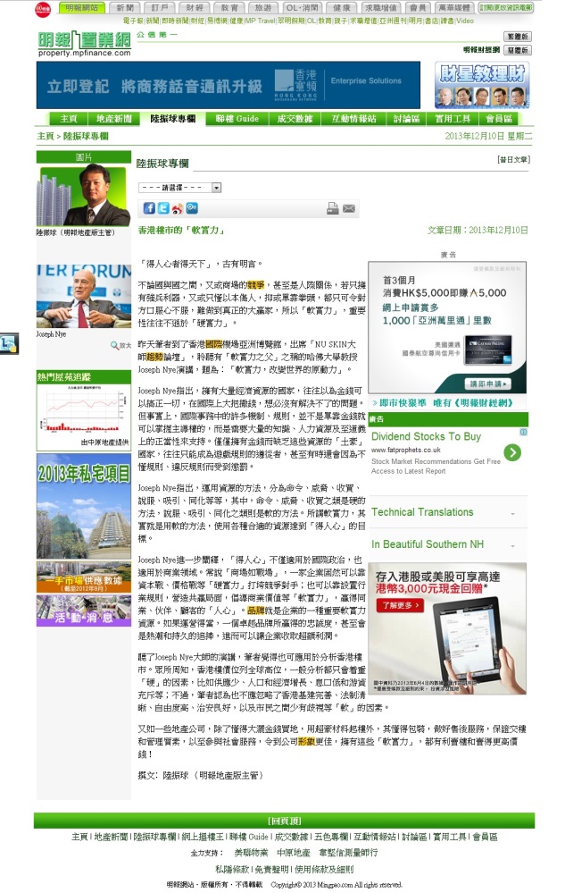 《香港樓市的軟實力》 |