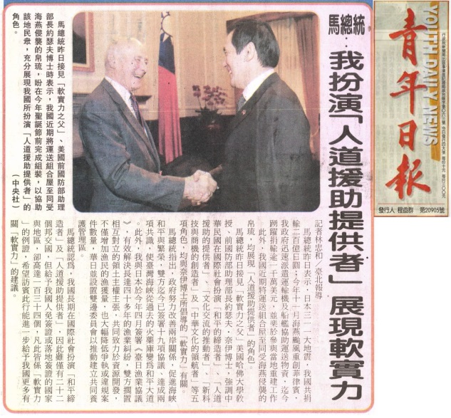 馬總統:我扮演「人道援助提供者」展現軟實力 |